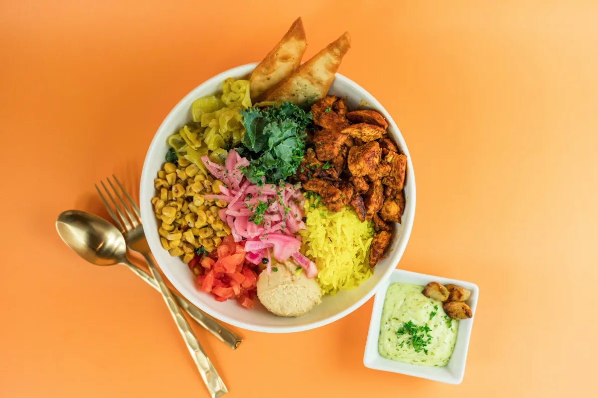 A: We offer a wide range of vegan and vegetarian-friendly Greek food. Guests can enjoy our Falafel, Zaatar-Seasoned Hummus, turmeric rice, and fresh vegetable toppings. Most of our signature sauces, like our Skhug and Roasted Red Pepper, are also vegan.